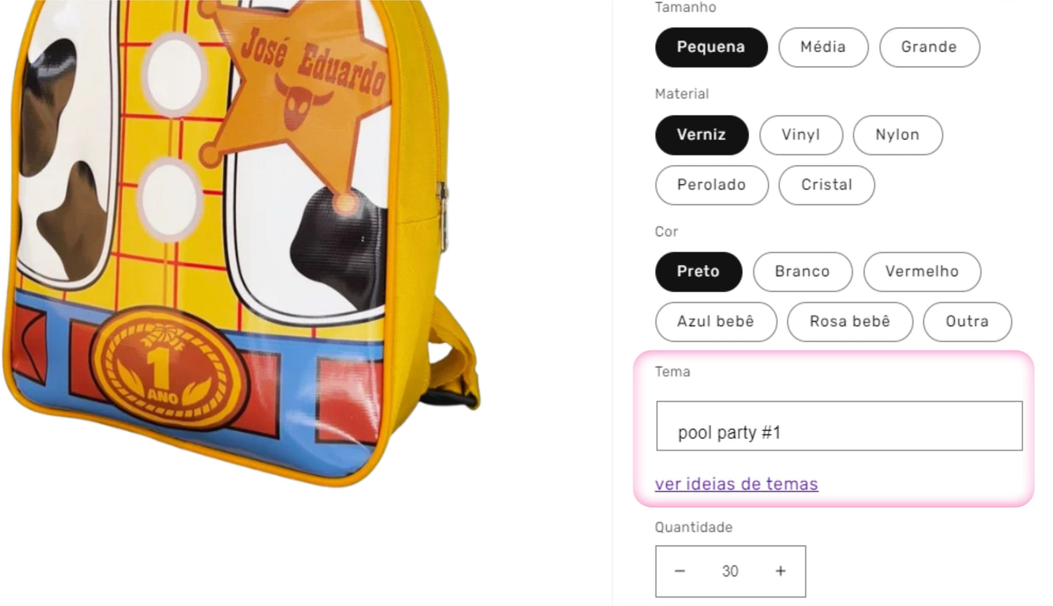 Escolha o modelo na página produtos. Selecione o tamanho e material
